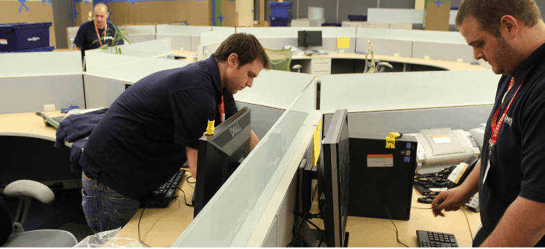 Yes. We relocate servers, monitors, workstations, and cabling with structured labeling, protective packing, and organized re-setup to keep systems intact.